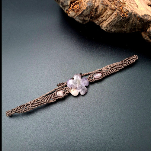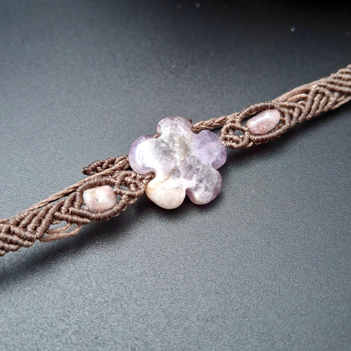دستبند میکرومکرمه گل سنگی آمیتیست